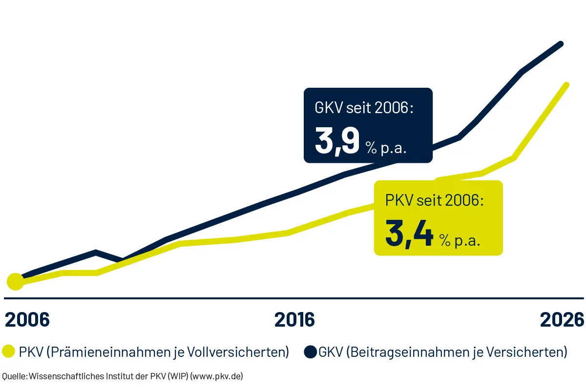 Beitragsentwicklung der GKV und PKV im Vergleich