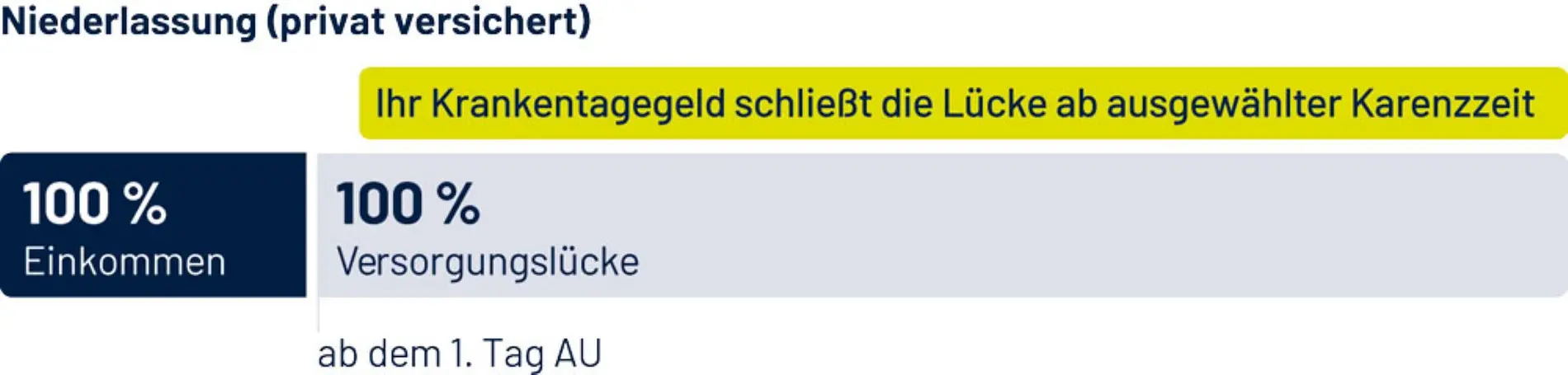 Wir bieten Ihnen passende Tarife, die mit flexiblen Karenzzeiten – ab dem 4. Tag – auf Ihren individuellen Bedarf zugeschnitten sind. Zudem sichern wir nicht nur Ihr Einkommen, sondern auch Ihre Umsatzerlöse ab. Das Krankentagegeld erhalten Sie in vereinbarter Höhe – und das ohne zeitliche Begrenzung. Damit Sie sich im Krankheitsfall nicht um die Praxis und ums Geld sorgen müssen.